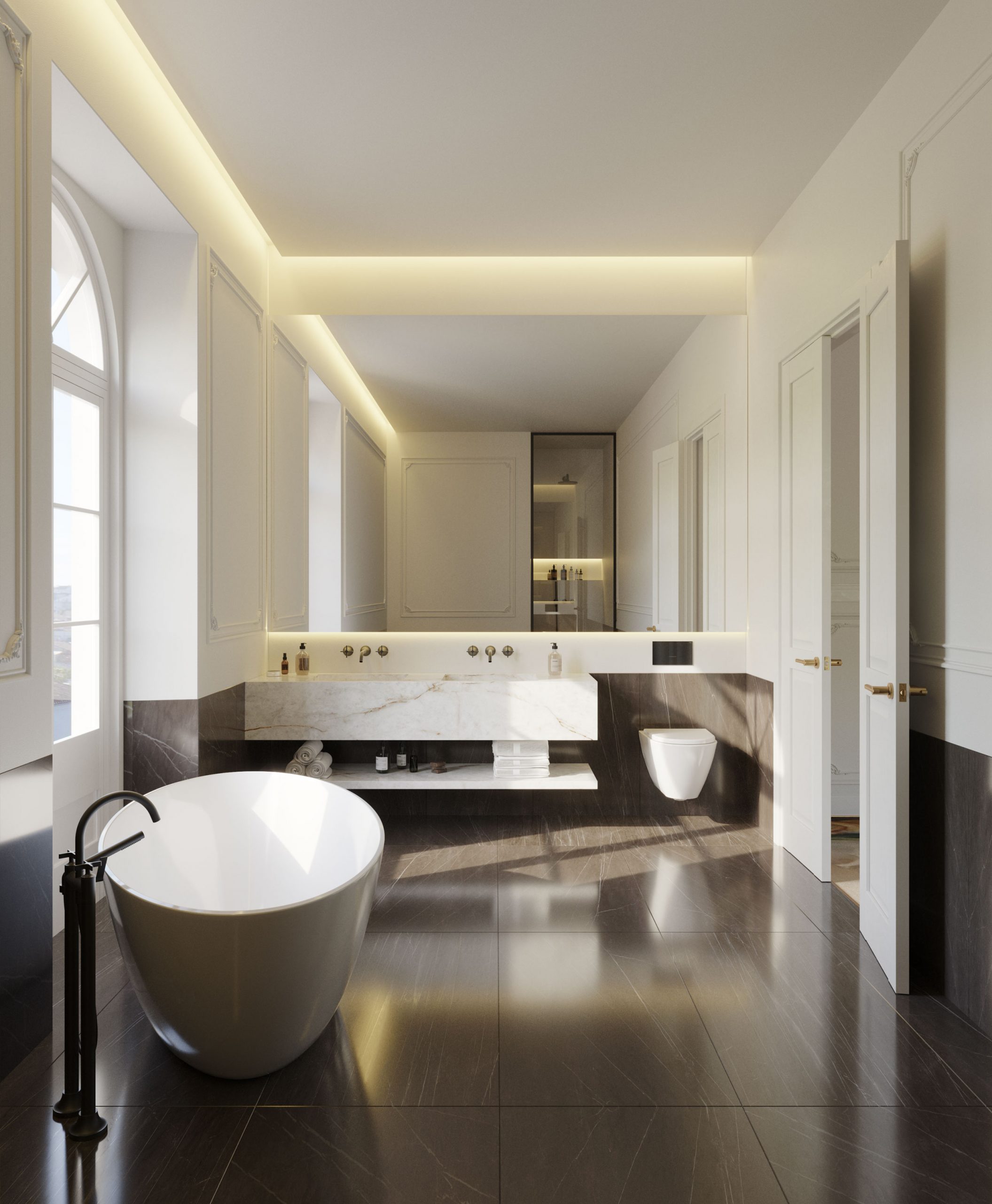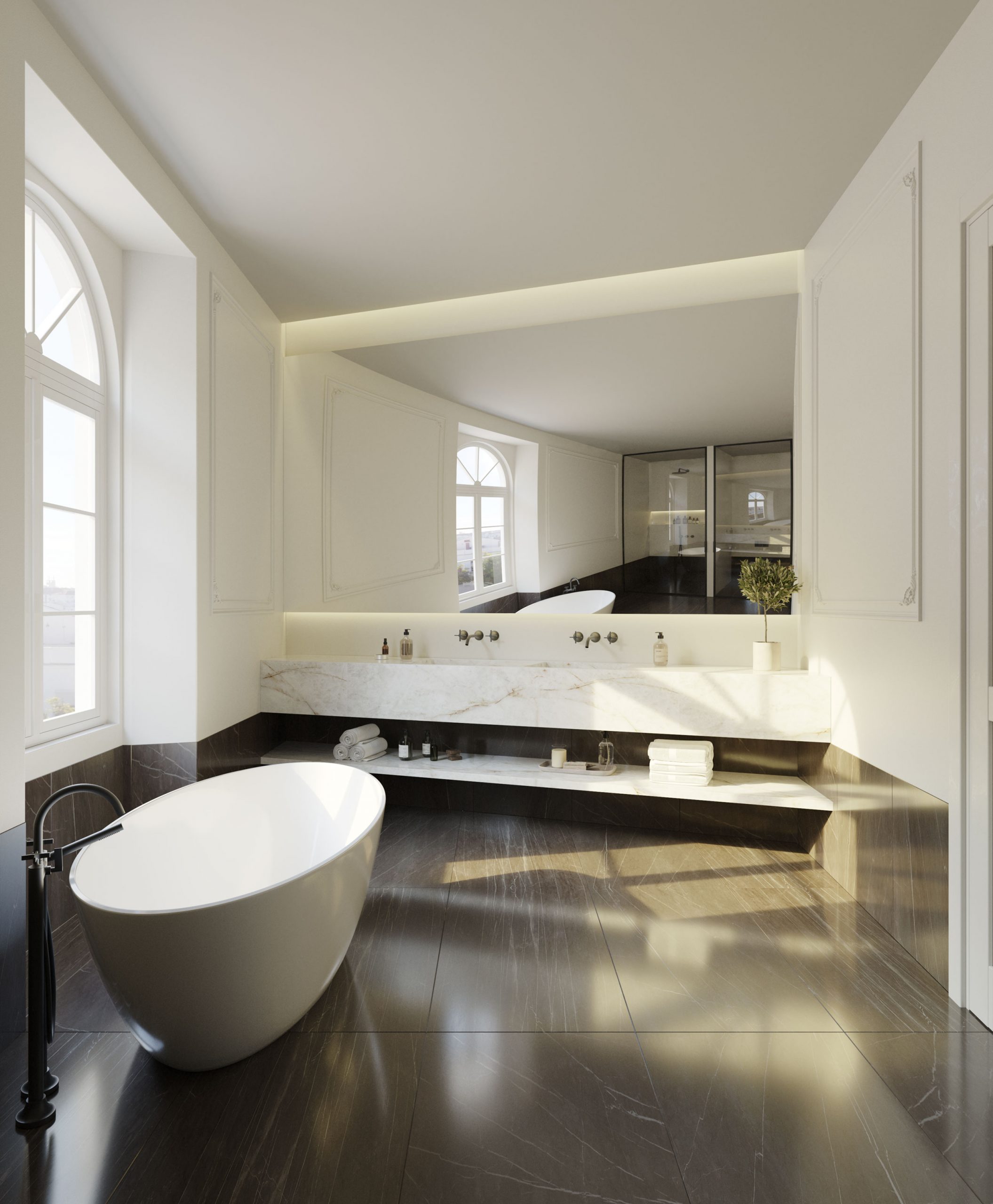 The marble bathrooms of Estremoz, offer all kinds of comfort. Shower or bath and exclusive courtesy kits signed by Acqua di Parma.
